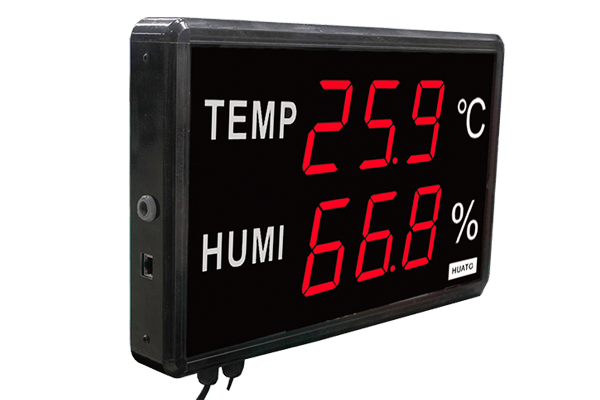 LED高度在1.8英寸~12英寸间可选,可订制单排,双排显示或多排显示,进行温度、湿度、压力、气体等测量,适合各种场合的远距离的观测。采用高亮LED数码管显示,显示数字清晰,可视距离达到10-100米,工作场所的任何一个人都能醒目的看到温湿度的变化情况,如有异常,可做到